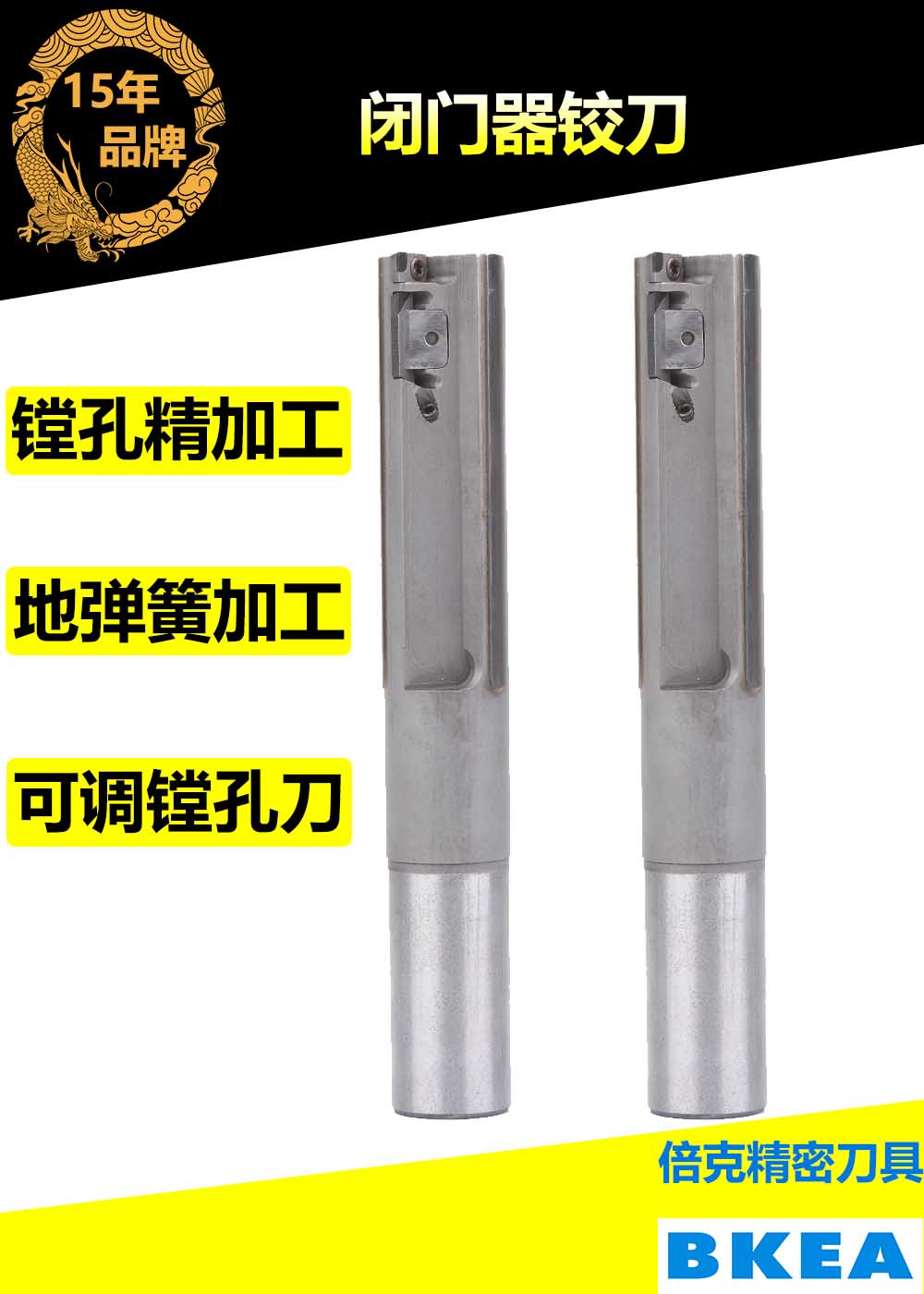 因为闭门器的工艺比较特殊他在链接处需要精密的制造才可以进行 闭门运作 只要刀具有一点的异常和顿感 他们的精密就没有发可以很好的保证下来 所以纯钨钢打造的闭门器铰刀营运而生 他在硬度的保证下 还有非常高的精度和切削能力在机器的带动和转动下迎合闭门器的工艺来完成。
